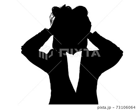 頭を抱える女性ビジネスマンシルエット2