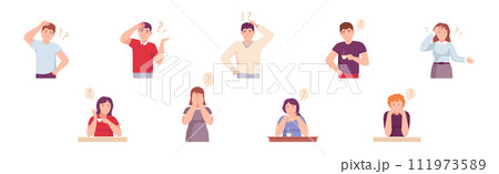 Pensive People Character Scratching Head Thinking and Considering Something Vector Set