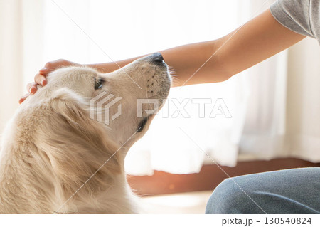 飼い主に撫でられるゴールデンレトリーバー(愛情と信頼の瞬間)