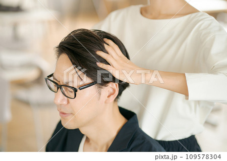 ヘアサロンで働く女性と男性客