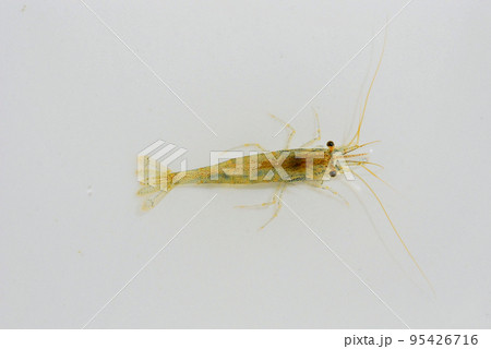 川岸沿いに生えている水草の中で捕れたヌマエビ