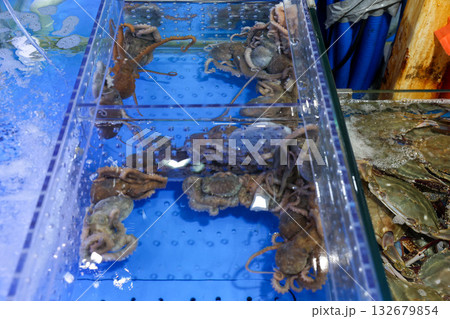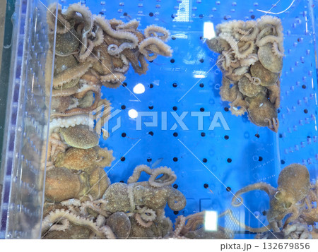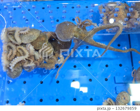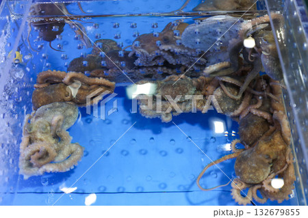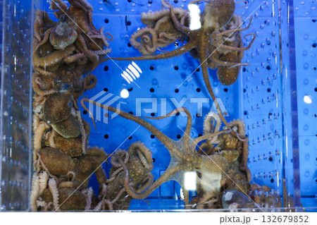 Korean seafood ingredient. Live octopus in a tank