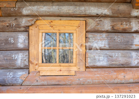 old wooden house, old windows, old building. wooden roof shingle
