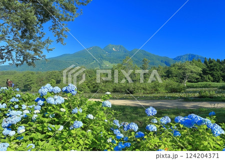 【新潟県】快晴の妙高山と紫陽花(いもり池)