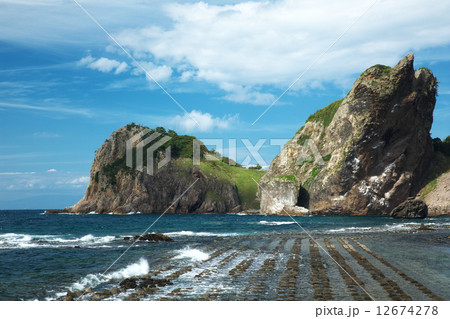 下北半島の海岸にある奇岩 願掛岩の男願掛に見られる柱状節理