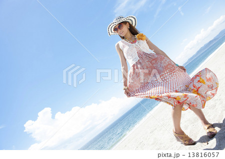 海岸でポーズをとっている女性