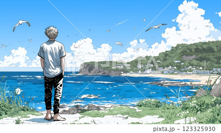 潮風の心地よさを満喫している若い男性