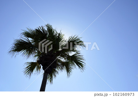 シルエットのヤシの木と青空 ワシントンヤシ グラフィック素材シルエットのヤシの木と青空 ワシントンヤ