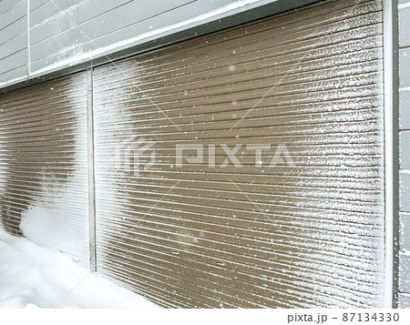 吹雪とガレージのシャッター