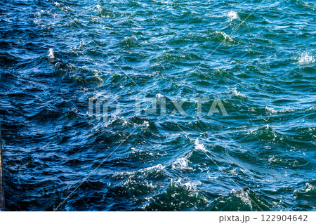 日本の横浜都市景観 強風で(土煙に覆われた横浜の空や)大きく波打つ山下公園前の海などを望む=13日