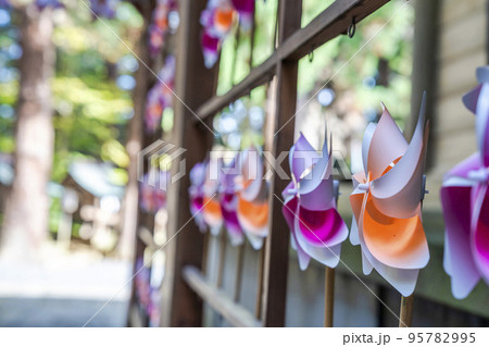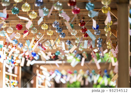 夏の熊野神社(熊野大社)の風景 風鈴の飾り「かなで」 山形県南陽市