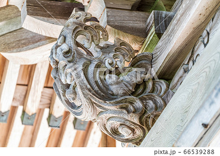 夏の熊野神社(熊野大社) 風鈴の飾り「かなで」の影 山形県南陽市