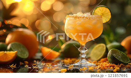 Non-alcoholic Margarita hovering with lime slices and orange zest