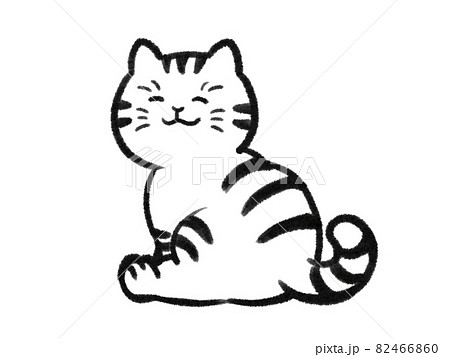 日本画タッチの座る猫イラスト