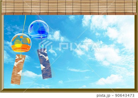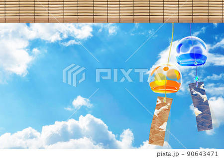 夏の青空にゆれる水玉の風鈴 背景素材