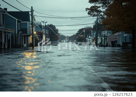 Flooded streets after heavy rainfall coastal town photography urban environment low angle climate impact awareness