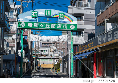 大田区東急池上線 石川台駅 希望ヶ丘商店街、快晴、商店街