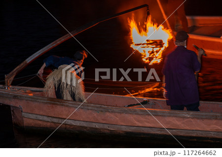 涼を感じる夏の風物詩宇治川の鵜飼いを撮影