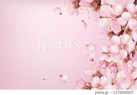 ピンクの桜の花びらが浮かぶ夢のようなグラデーション背景セット