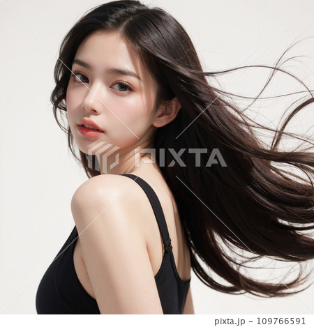 風になびく美しい髪の女性