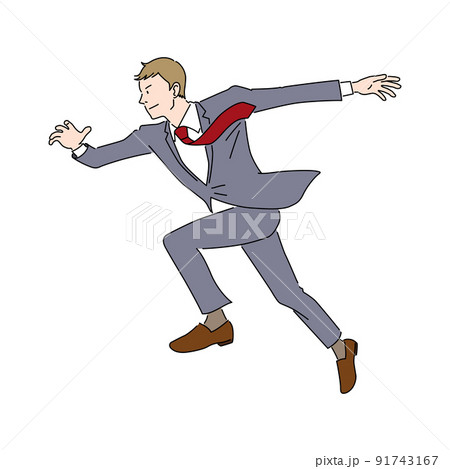 颯爽と現れるビジネスマンのイラスト(白背景・ベクター・線画・切り抜き)