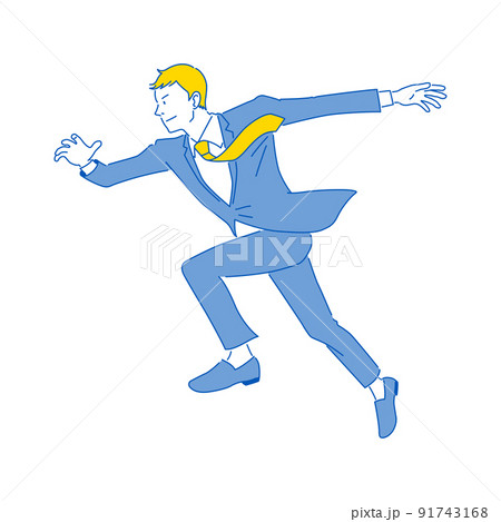 颯爽と走るビジネスマンのイラスト(白背景・ベクター・線画・切り抜き)