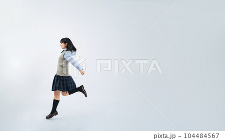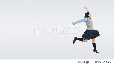 ジャンプする制服の女子学生 背景透過切り抜きPNG