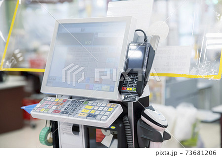 飛沫感染対策をしたスーパーのレジ 無人