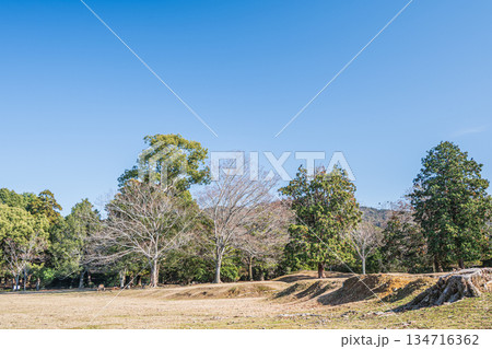 奈良公園飛火野の樹林風景