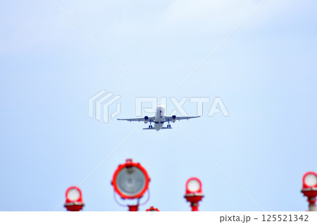 離陸した飛行機と誘導灯/那覇空港