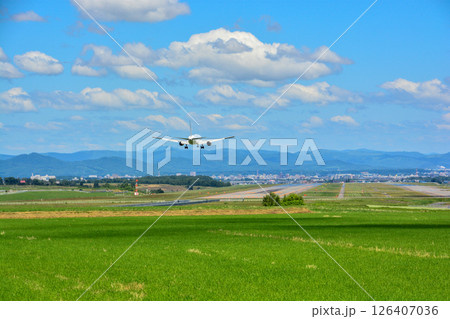 着陸する旅客機(仙台空港)
