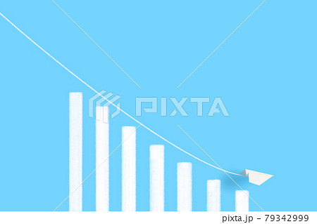 下落する棒グラフと紙飛行機