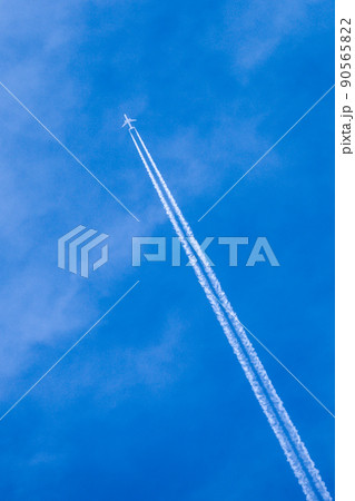 初夏の空 飛行機雲 青空 空 イメージ