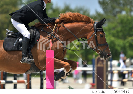 障害馬術競技 力強く跳ねる馬と選手