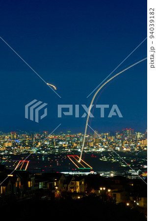 山手台北公園から見る大阪空港(伊丹空港)と飛跡、大阪の夜景、10月29日、日本