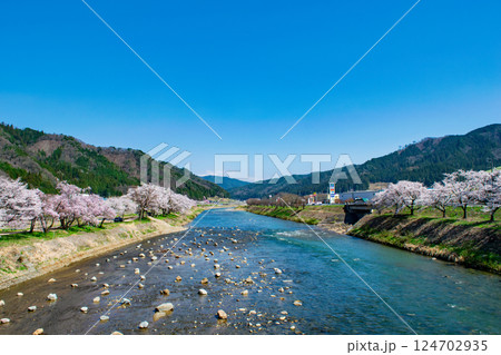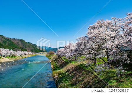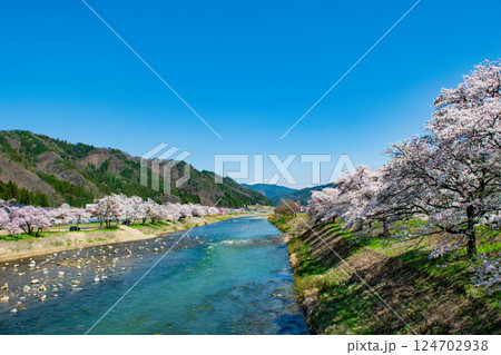 飛騨高山 国府町 宮川沿い桜野公園に咲く満開の桜 4月下旬