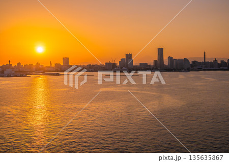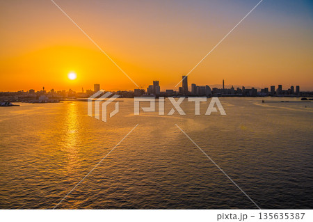 日本の横浜都市景観飛鳥Ⅲや富士山、みなとみらいなどを望む