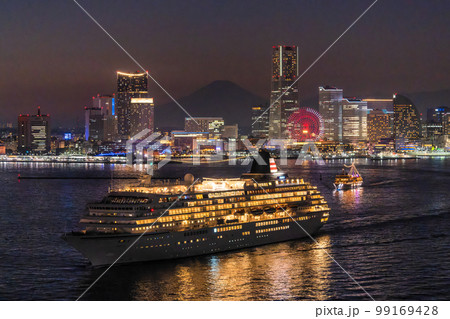 《神奈川県》横浜の夜景と出港する豪華客船・富士山も一望