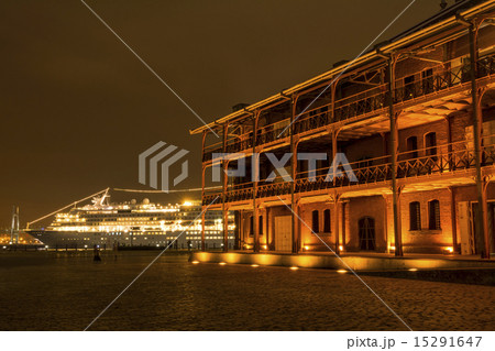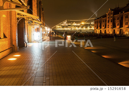 客船をバックに横浜赤レンガ夜景