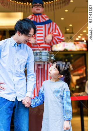 大阪道頓堀の観光をする親子