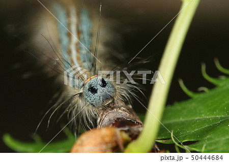 生き物 昆虫 マイマイガ、まだ頭が黒い若齢幼虫。毒針毛を持つのはこれより若い第一齢だけだそうです