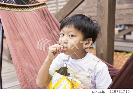 コロッケを食べる少年<02>キッチンカーで購入したコロッケ