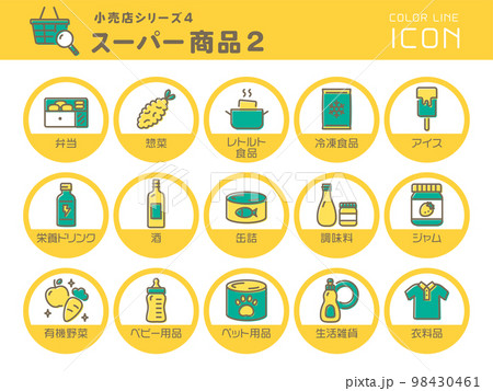 小売店シリーズ4 スーパーの商品2 カラーラインアイコンのセット