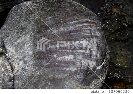 アユが底石に付着した苔を歯ではぎ取って食べた痕が、石の表面についた