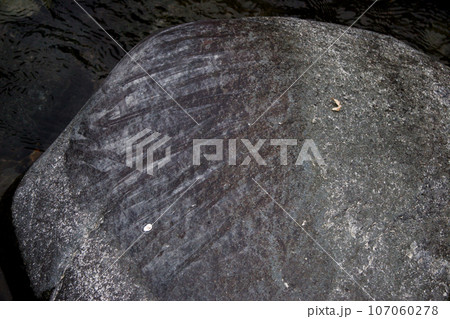 川底の石に付着していた苔を、アユが歯で剥ぎ取って食べた跡が付いている