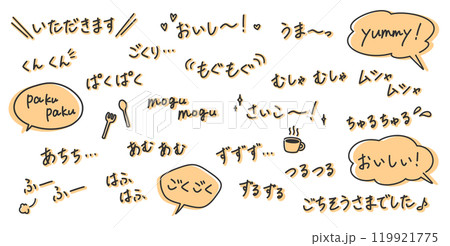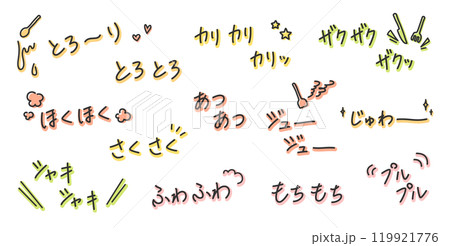 食べ物の擬音・効果音の手書き文字イラスト グルメデザインあしらい飾り アウトライン前・線幅の編集可能