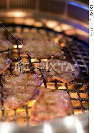 赤身の肉を炭火の七輪で焼く