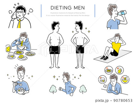 ベクターイラスト素材:ダイエットする男性、人物セット