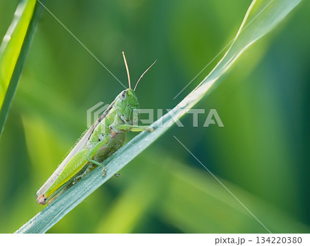 葉にとまるバッタ バッタ科コバネイナゴ♂