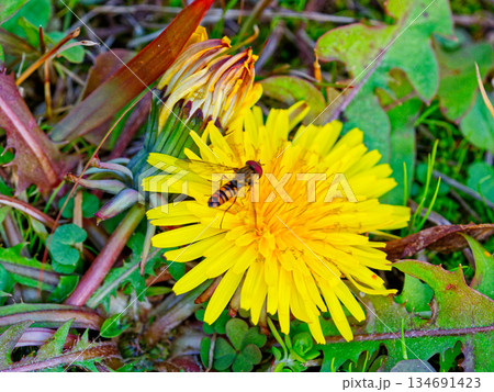 ヨーロッパ原産帰化植物 キク科セイヨウタンポポと訪花昆虫